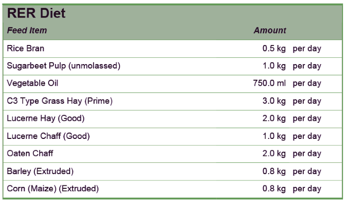 Below are some examples of diets for horses with PSSM and RER that follow the first two tips given here.